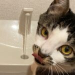 流れる水を飲みたいのか、蛇口から出る水を舐めます。