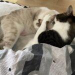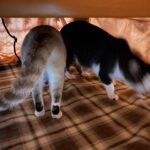 そらちゃんが布団に潜っていた所にみーちゃんがちょっかいをかけてきました。