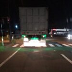 路面をみると、レーザーのような明るいライトで、「×」が照射して…