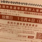 来る10月4日、日曜日は長岡市長選挙投票日です。期日前投票もはじまっています。有権者の義務ということで、当日中までには、投票をしたいと思います。…