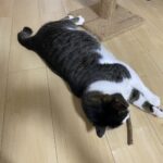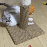 猫の爪研ぎの上にネズミのおもちゃが付いていましたが、速攻でそれを壊してくれたので代わりに鞠を付けてみました。