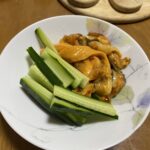 捌いたばかりのホヤをキュウリと合わせて食べましたが美味しかったです。